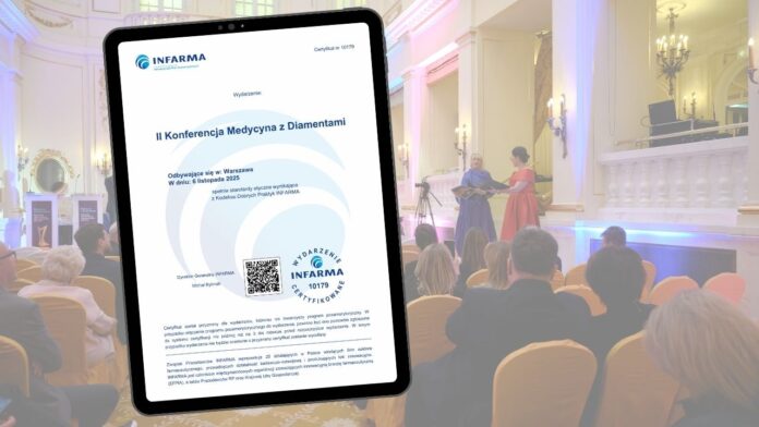 Z radością informujemy, że nasza II Konferencja „Medycyna z Diamentami”, która odbędzie się 6 listopada 2025 r. w Warszawie, otrzymała Certyfikat nr 10179 potwierdzający zgodność wydarzenia ze standardami etycznymi wynikającymi z Kodeksu Dobrych Praktyk INFARMA