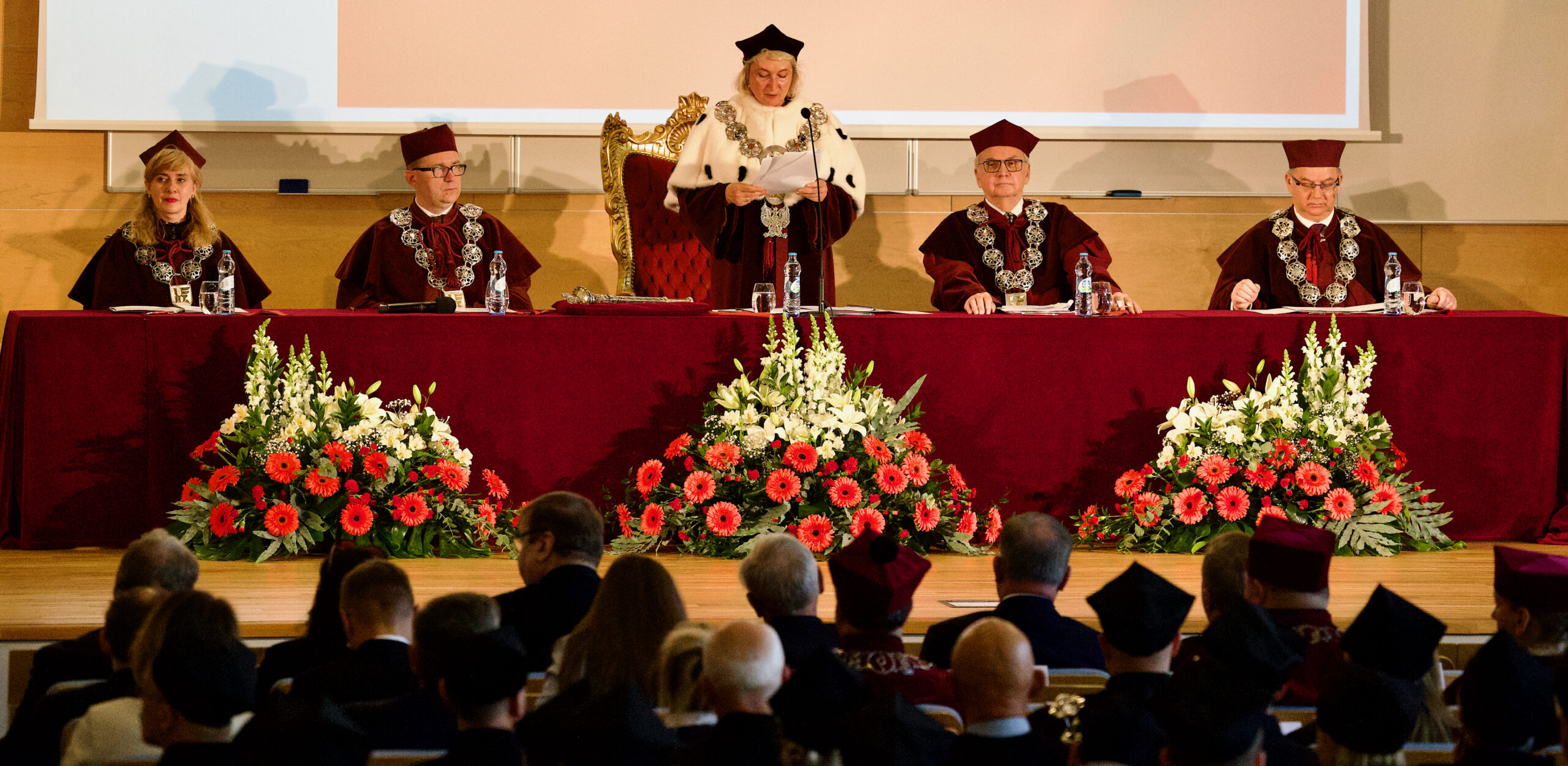 Zgromadzonych powitała JM Rektor prof. dr hab. Anna Wypych-Gawrońska, która zrekapitulowała m.in. ostatnie lata funkcjonowania Uczelni, opisując sukcesy, które utorowały drogę do zmiany nazwy na Uniwersytet Jana Długosza w Częstochowie.