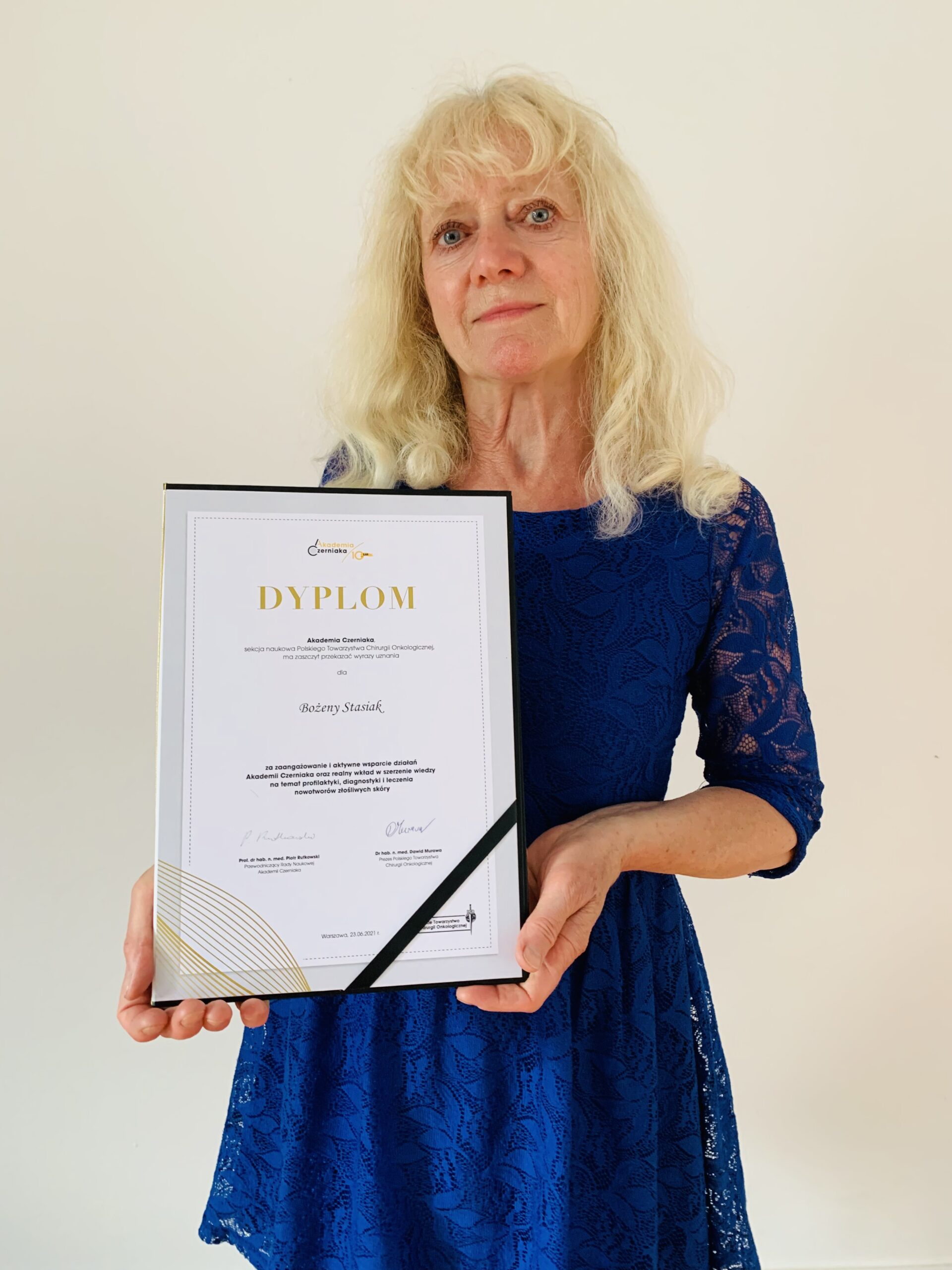 Bożena Stasiak otrzymała dyplom ?Akademia Czerniaka? – sekcji naukowej Polskiego Towarzystwa Chirurgii Onkologicznej.